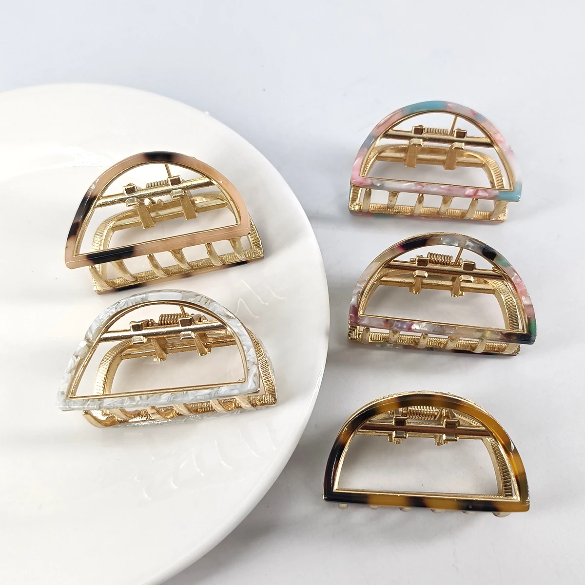 Name:5cm Mini half round shape Acetate Alloy Hair Claws